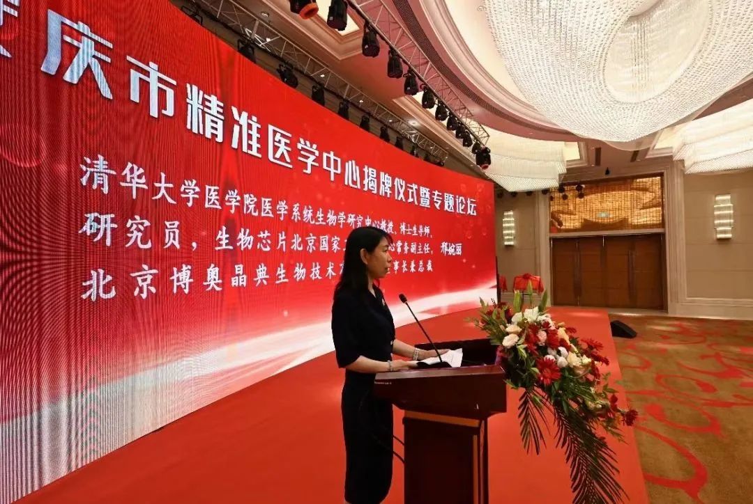 活動(dòng)現場(chǎng),安慶市衛健委黨組書(shū)記、主任潘結標,博奧晶典董事長(cháng)兼總裁邢婉麗教授分別致辭并對安慶市精準醫學(xué)中心的成立表示了祝賀。隨后,邢婉麗教授與王趙春副市長(cháng)共同為落戶(hù)安慶市立醫院懷寧院區的安慶市精準醫學(xué)中心揭牌。